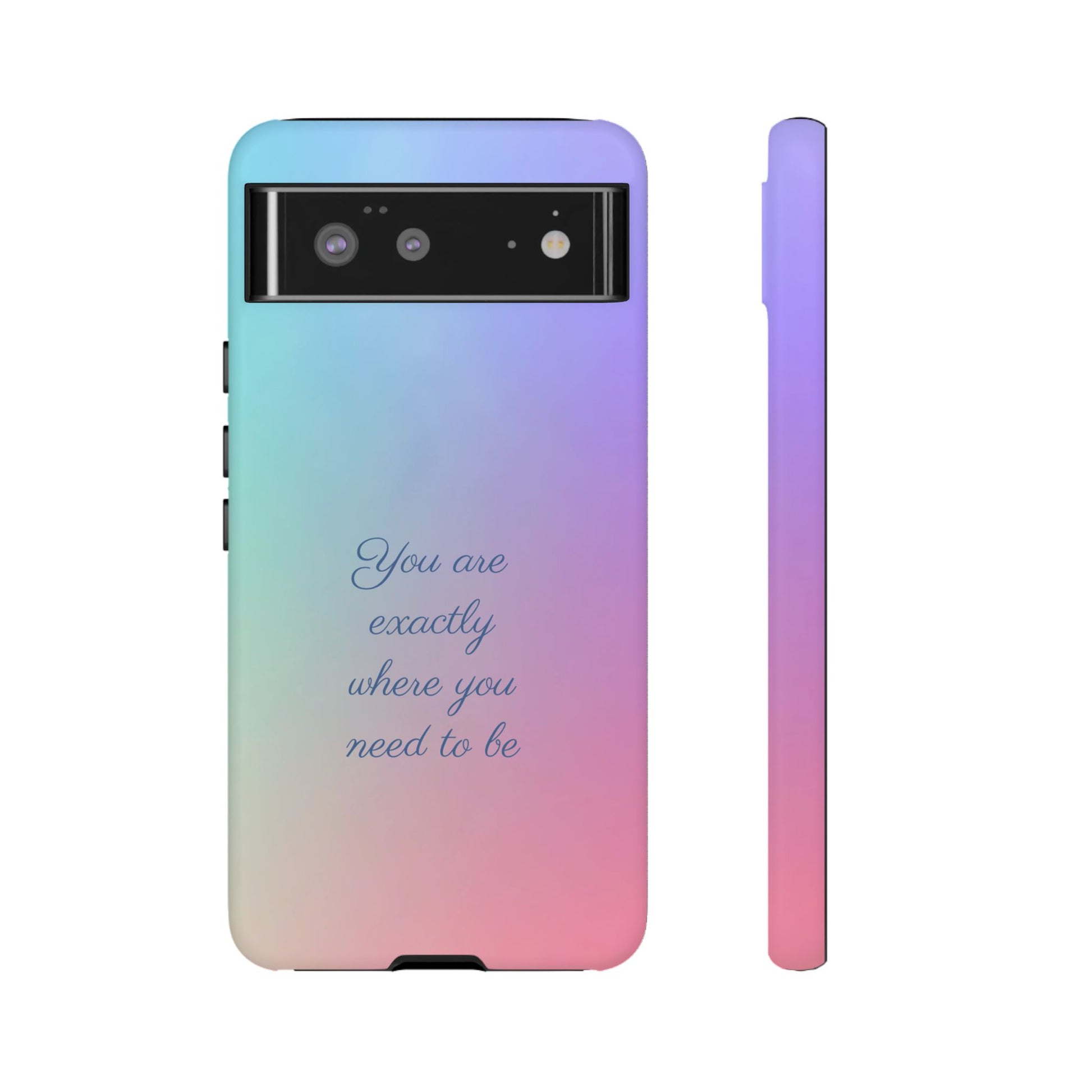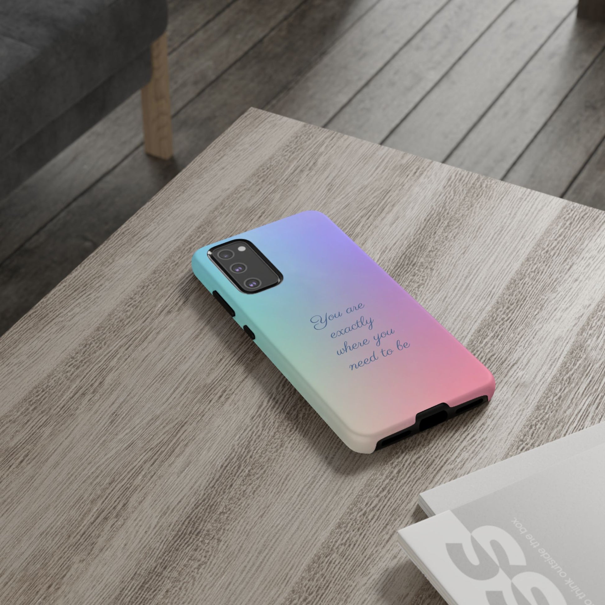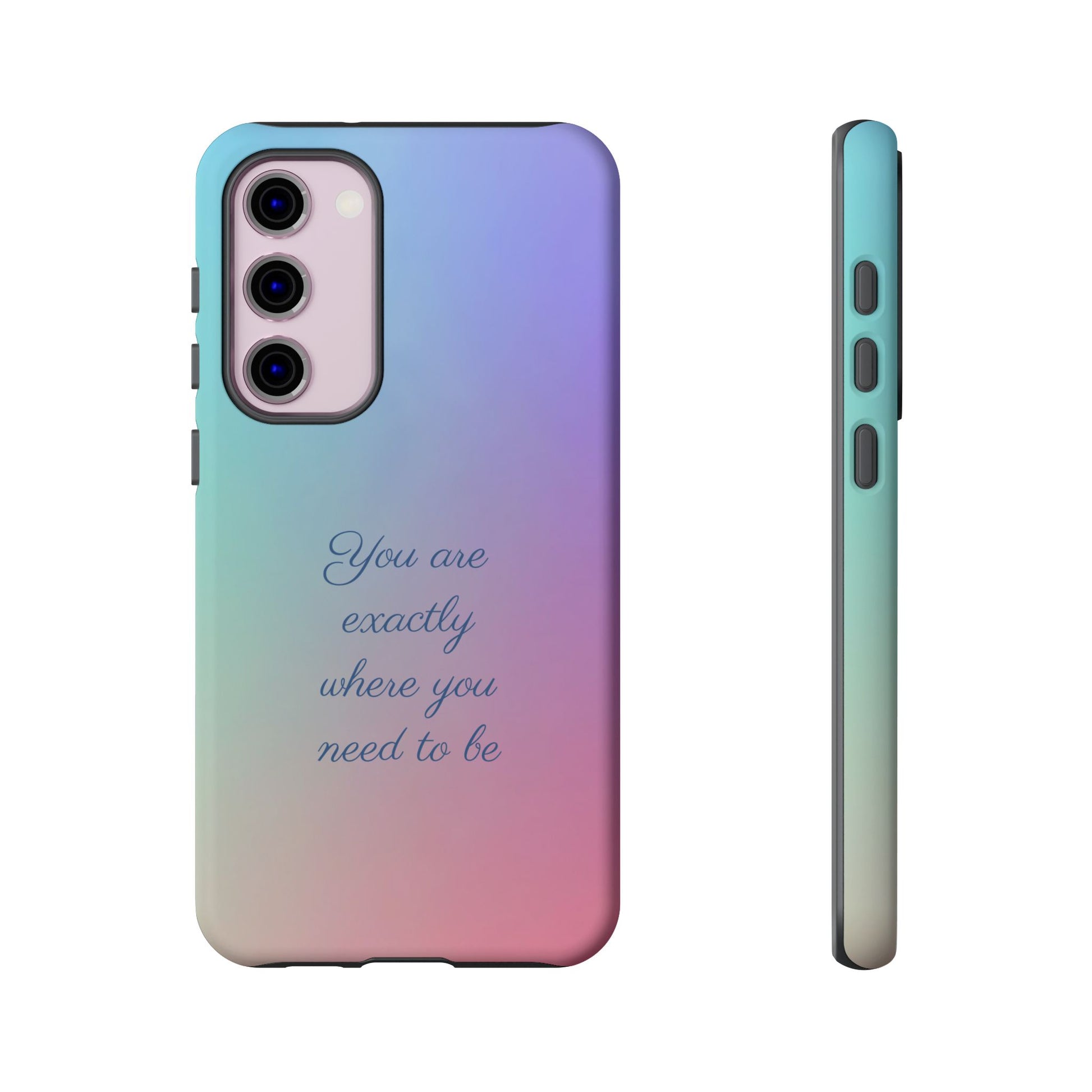 Featuring the uplifting affirmation "You are exactly where you need to be," this case serves as a daily reminder to trust your journey, embrace the present, and move forward with confidence. Whether you're conquering new challenges or simply soaking in the beauty of everyday moments, this case keeps you inspired while keeping your phone protected.