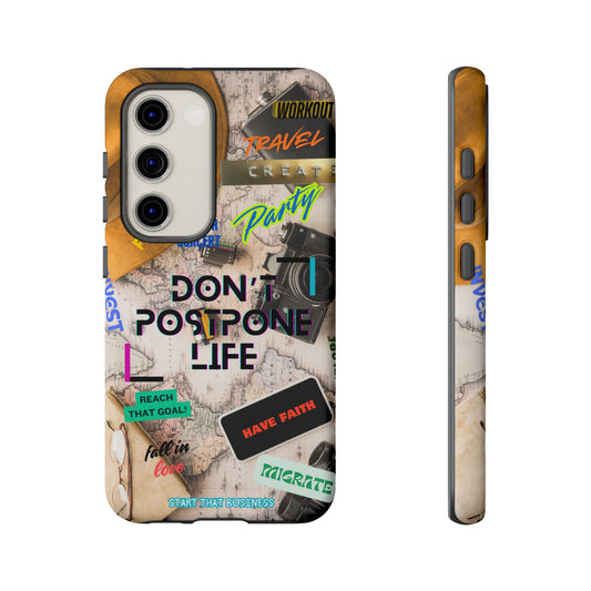 Don't Postpone Life: Motivational phone case for iPhone, Samsung Galaxy and Google Pixel devices