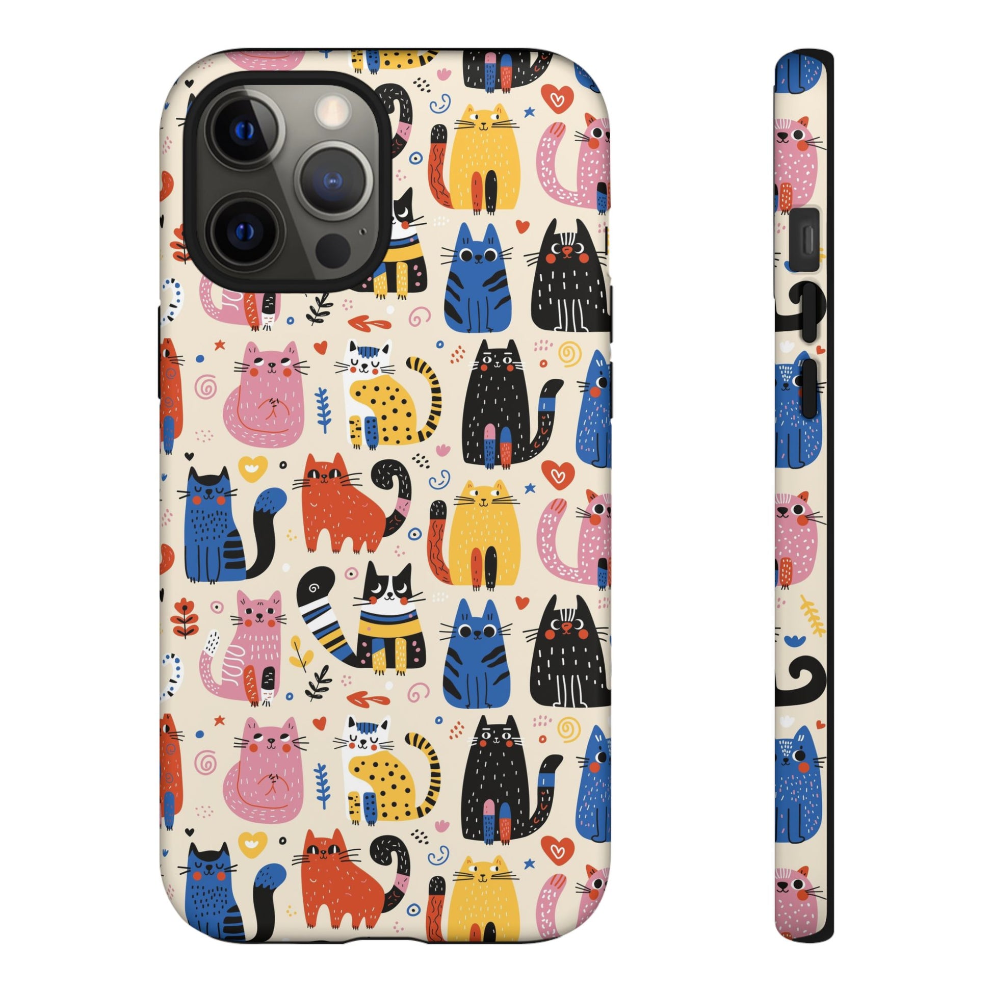 Cat Doodles Phone Case: Playful Cat-Inspired Tough Case for iPhone, Samsung Galaxy and Google Pixel devices