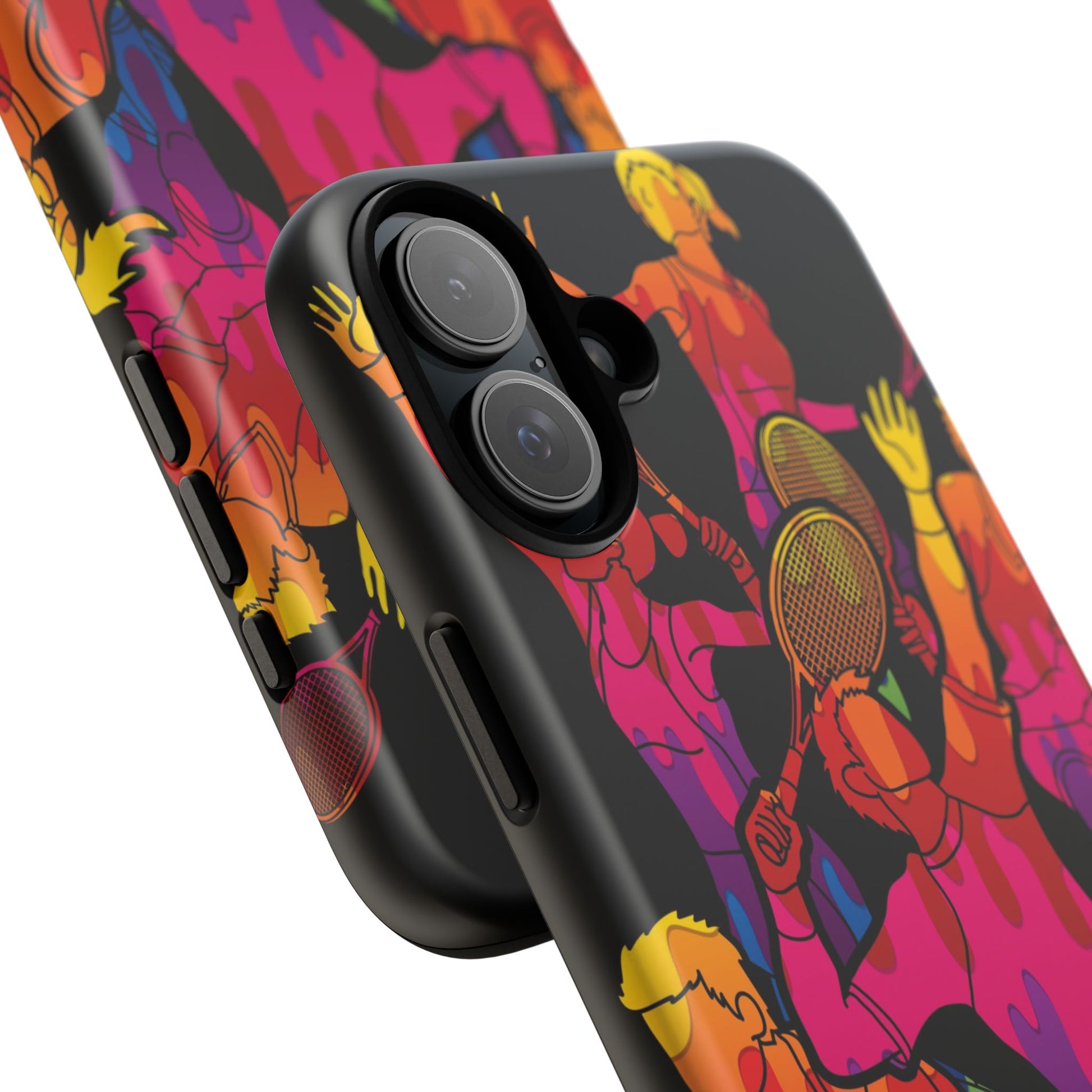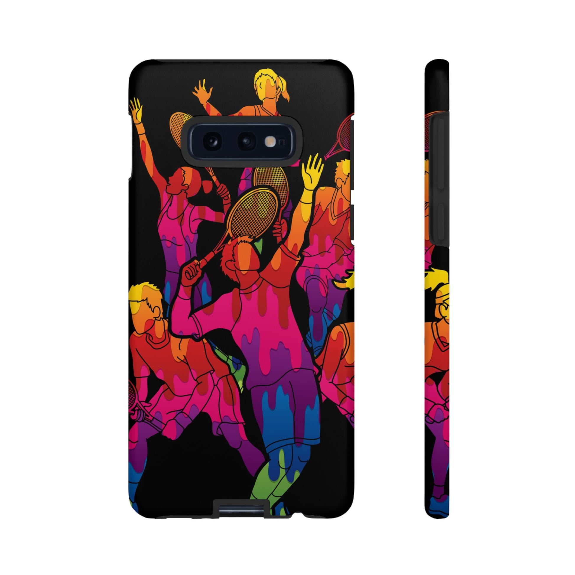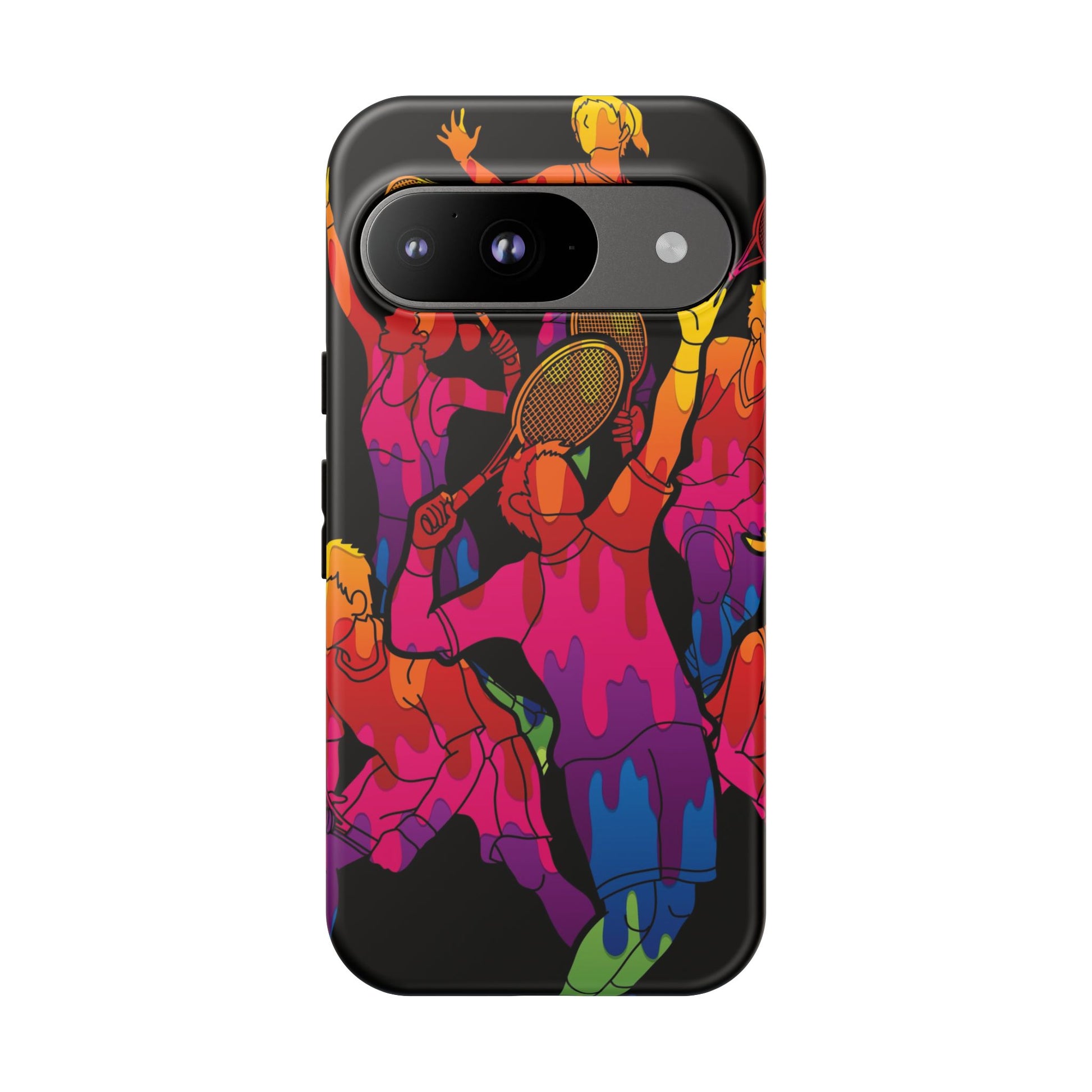 Bring the energy of the court to your everyday carry with the Tennis-Inspired Phone Case, designed for iPhone, Samsung Galaxy, and Google Pixel devices. This sporty phone case captures the thrill of the game with dynamic and colorful silhouettes of players in action, rendered in a vibrant burst of color that radiates movement, passion, and power.