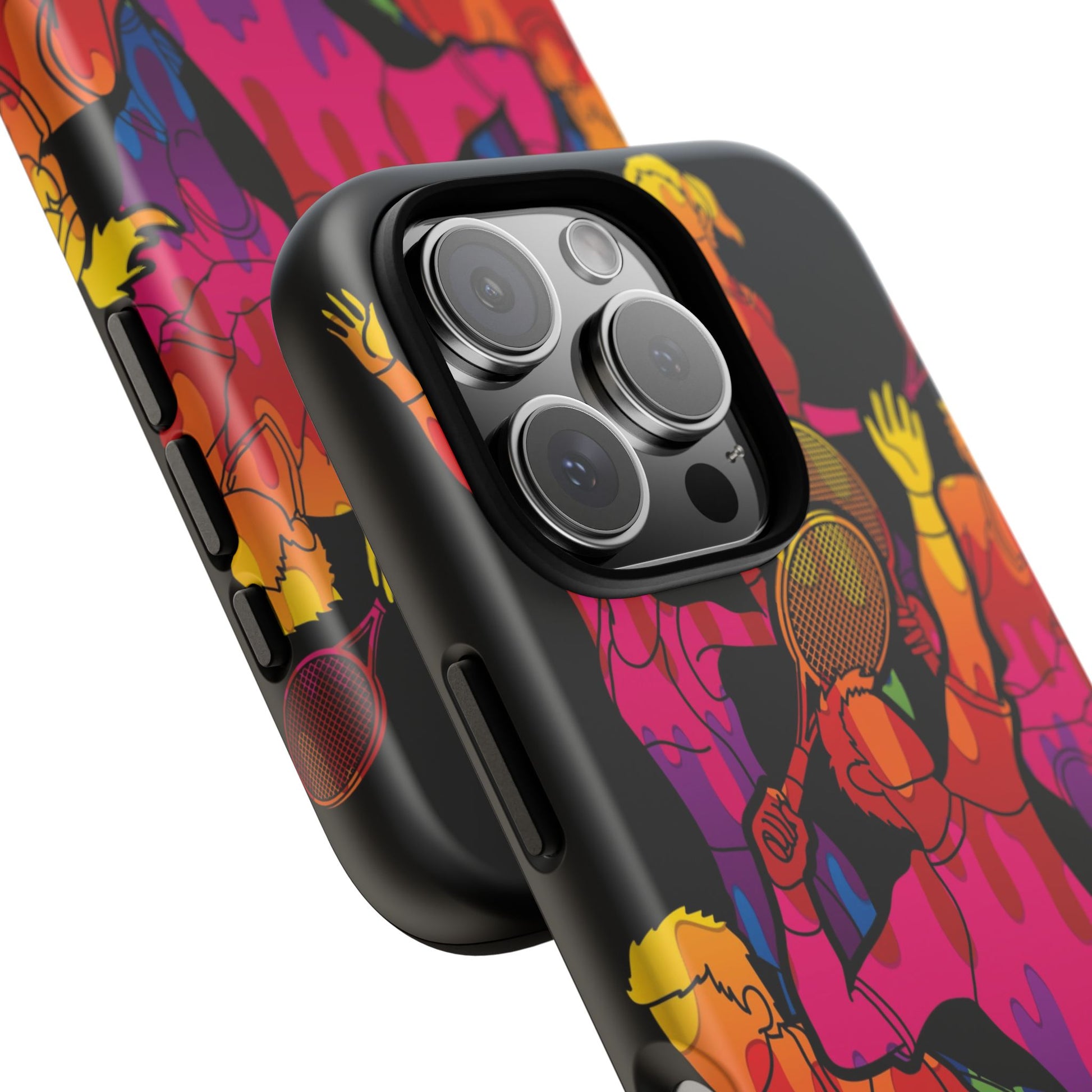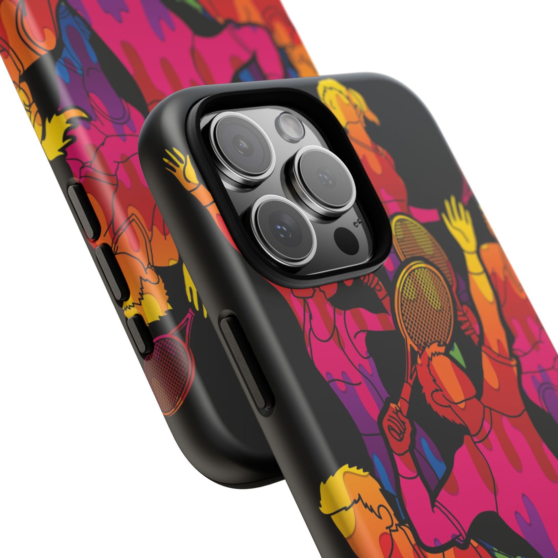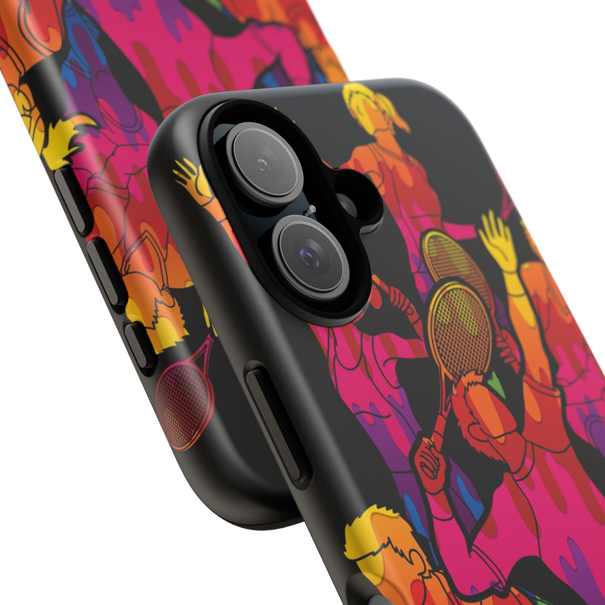 Bring the energy of the court to your everyday carry with the Tennis-Inspired Phone Case, designed for iPhone, Samsung Galaxy, and Google Pixel devices. This sporty phone case captures the thrill of the game with dynamic and colorful silhouettes of players in action, rendered in a vibrant burst of color that radiates movement, passion, and power.