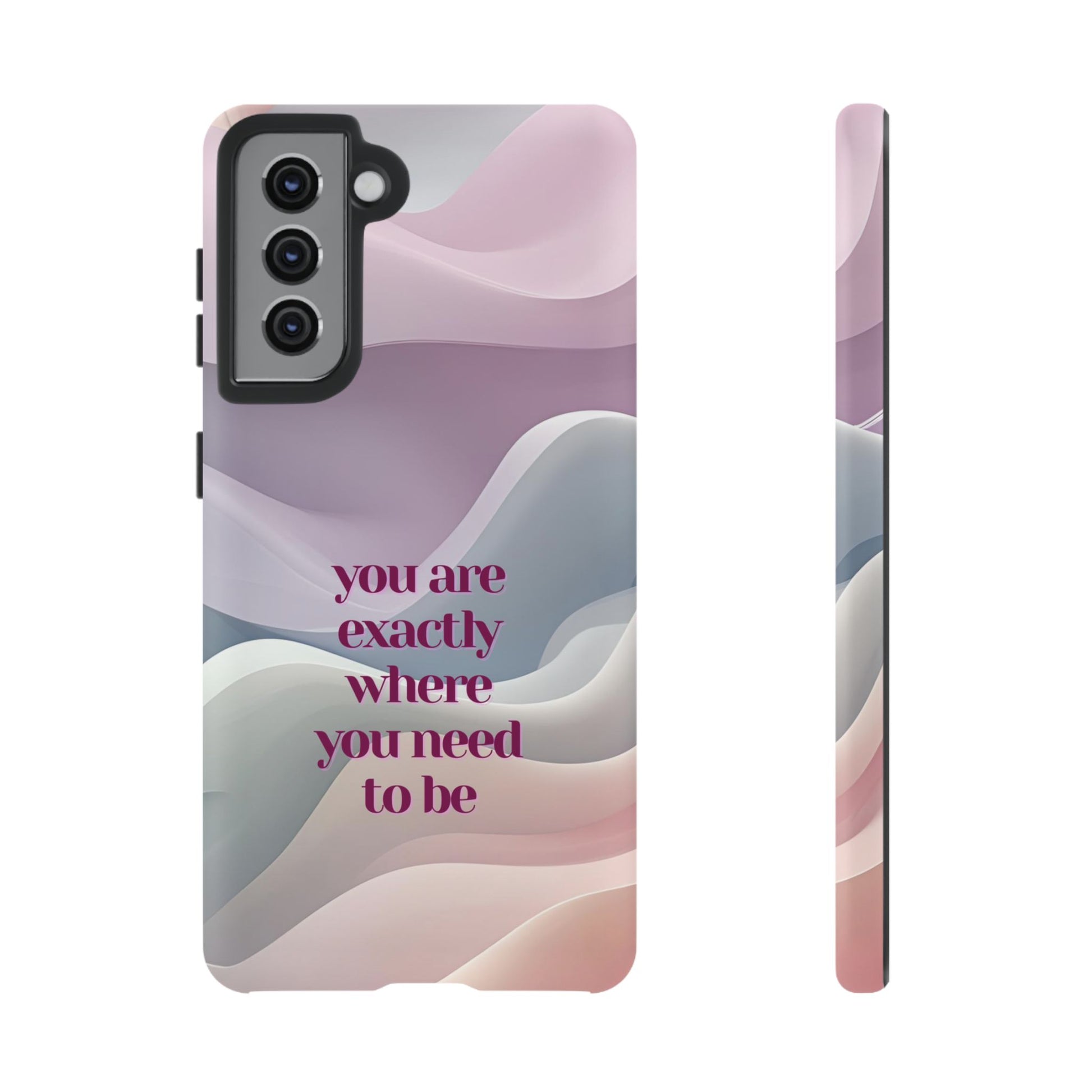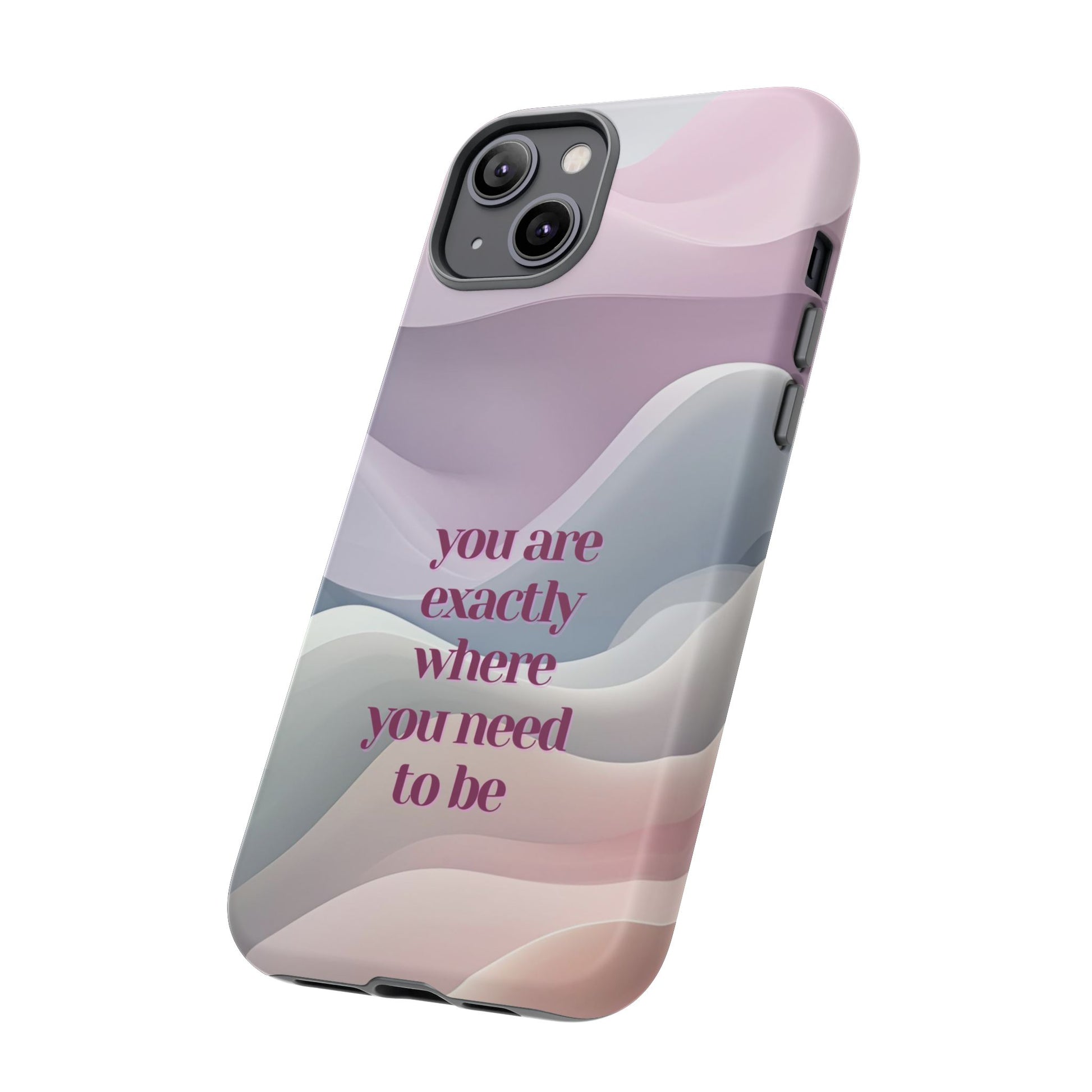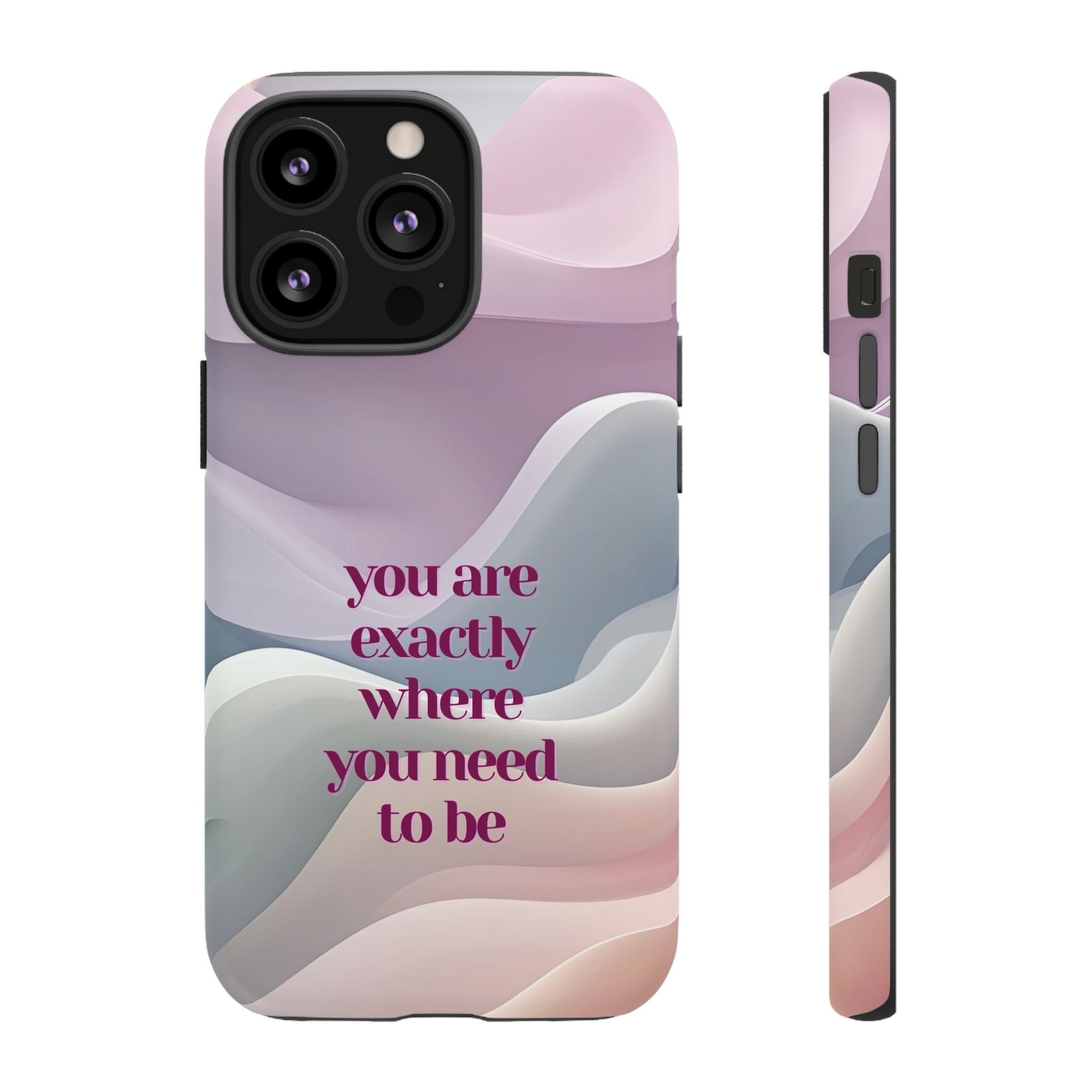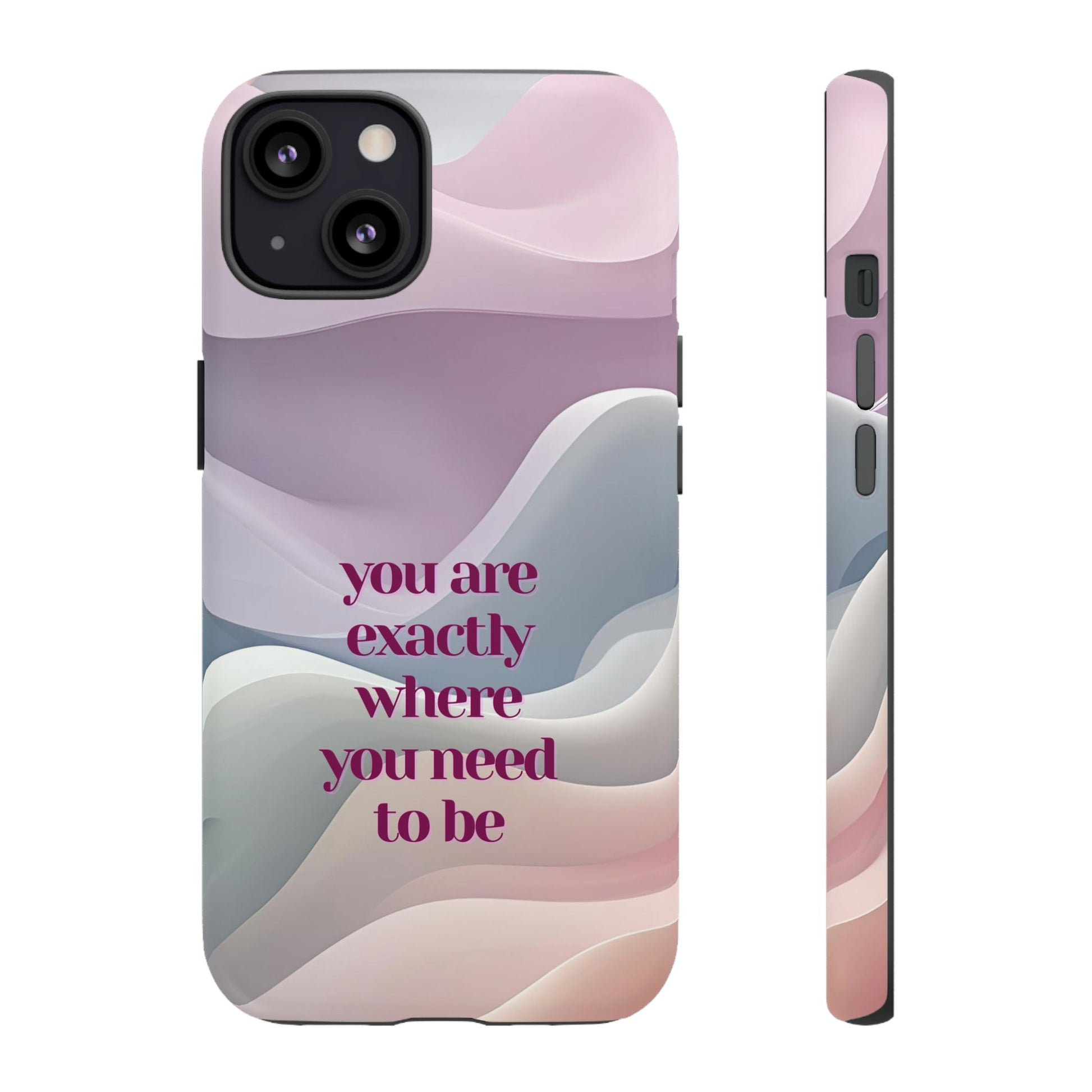 Featuring the uplifting affirmation "You are exactly where you need to be," this case serves as a daily reminder to trust your journey, embrace the present, and move forward with confidence. Whether you're conquering new challenges or simply soaking in the beauty of everyday moments, this case keeps you inspired while keeping your phone protected.