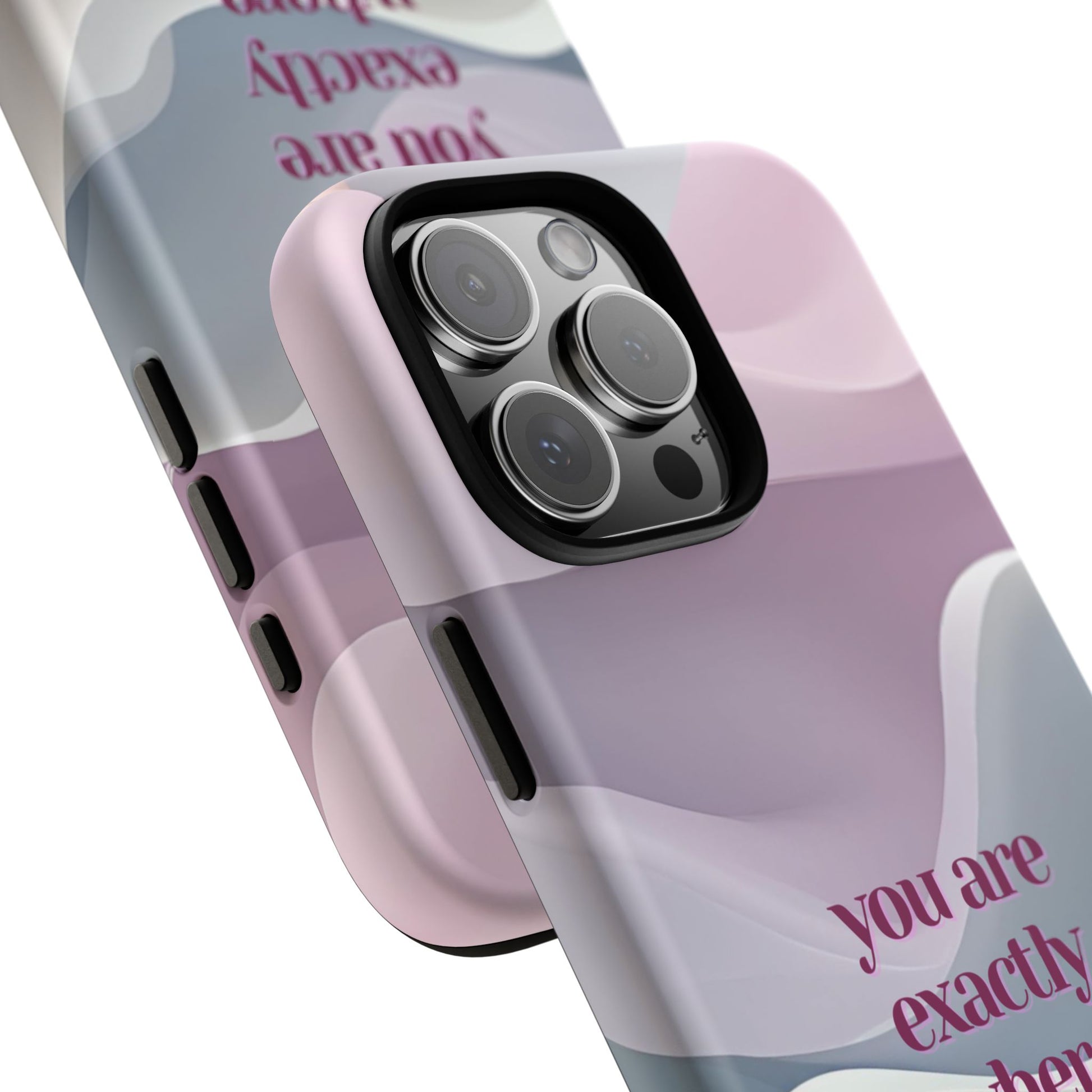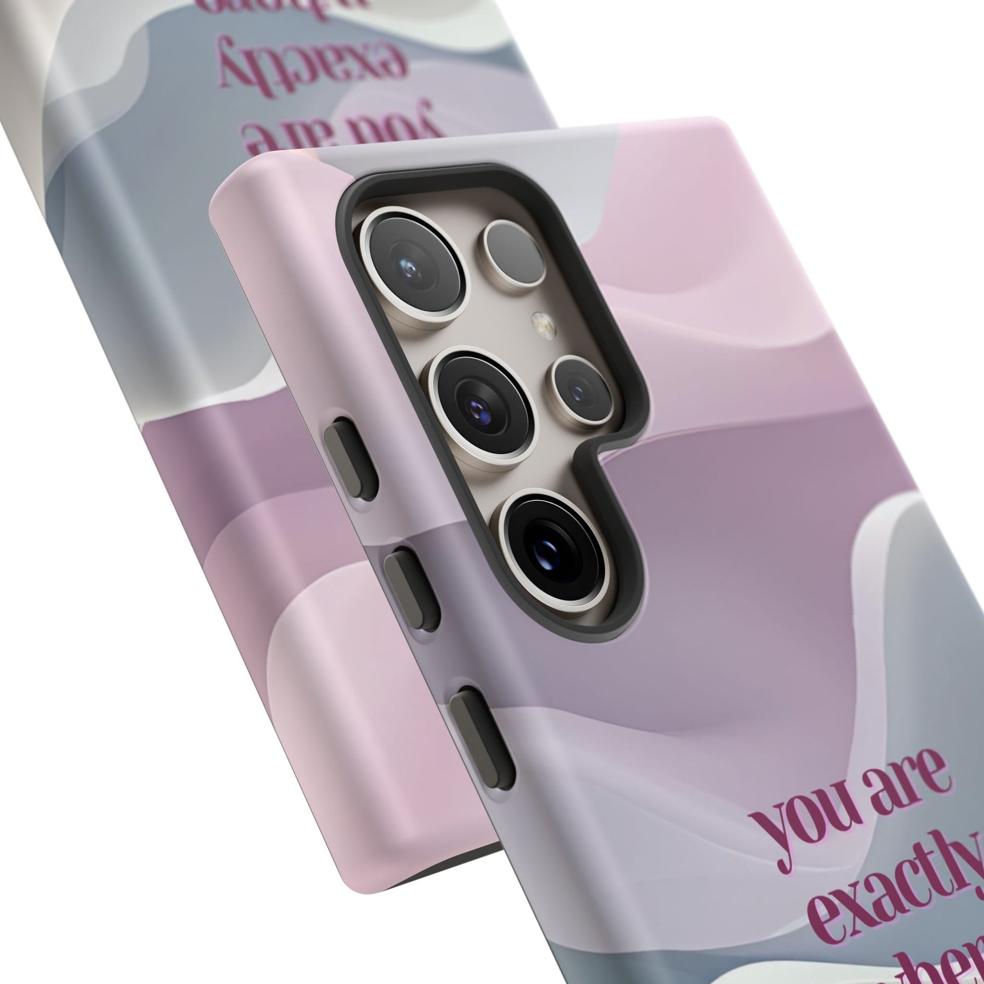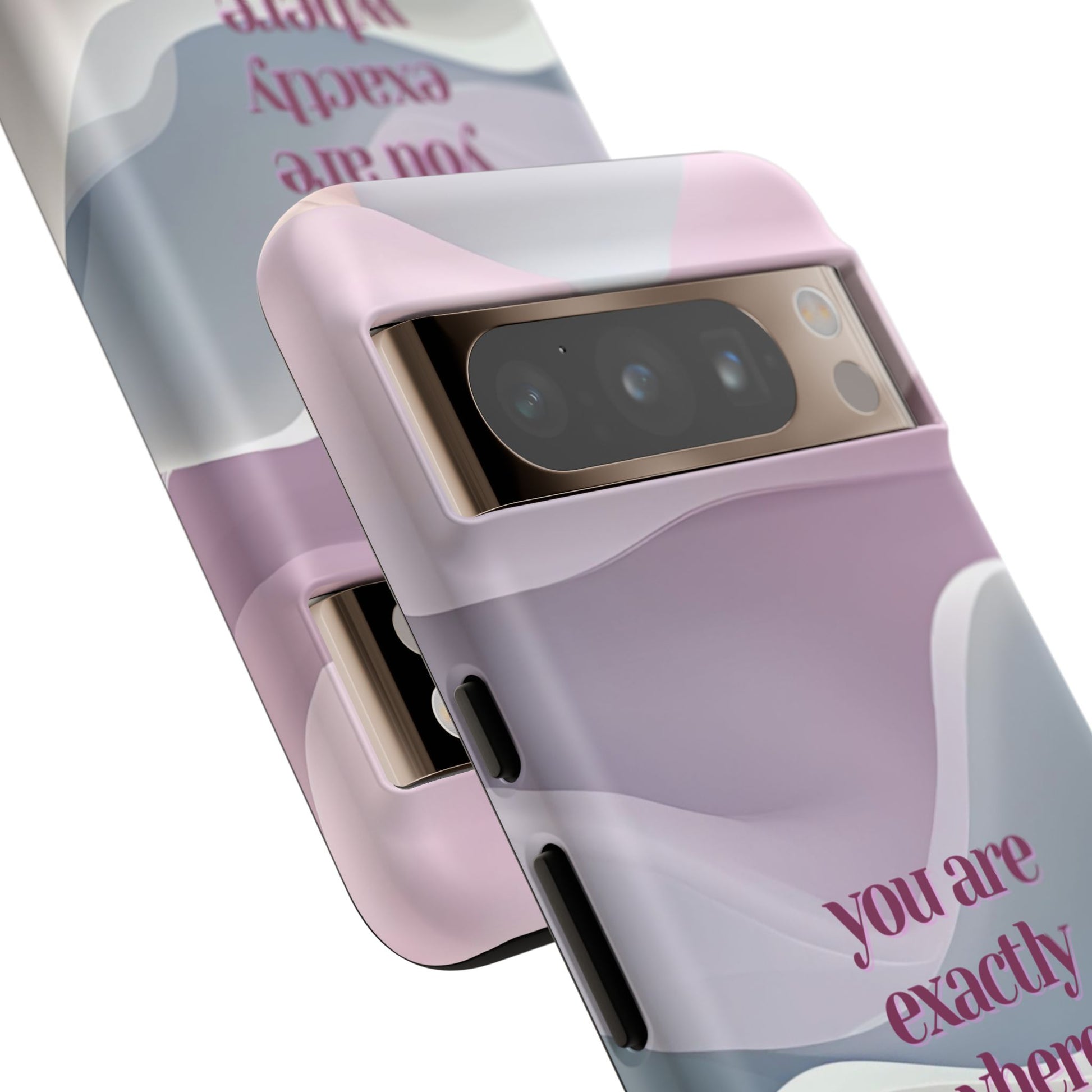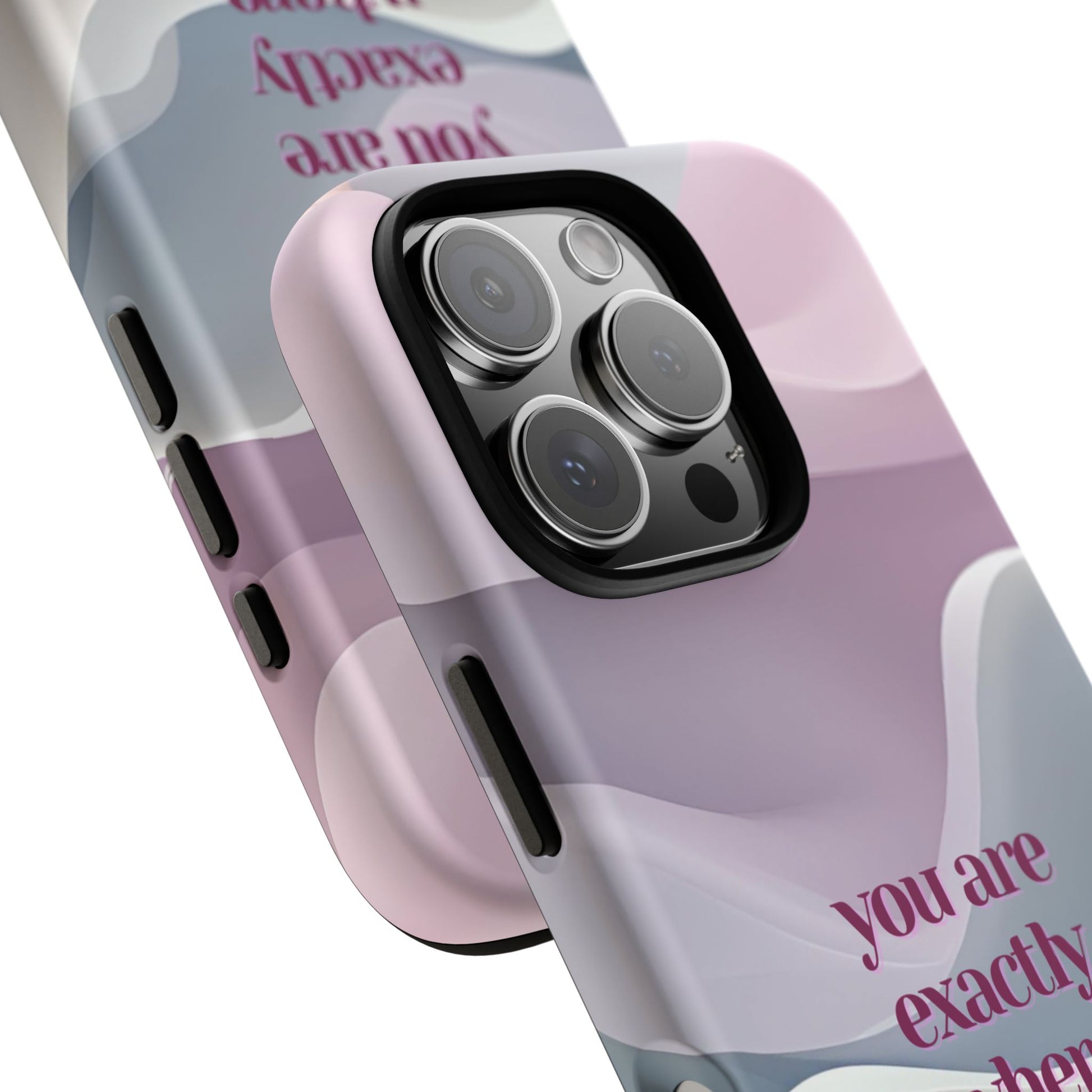 Featuring the uplifting affirmation "You are exactly where you need to be," this case serves as a daily reminder to trust your journey, embrace the present, and move forward with confidence. Whether you're conquering new challenges or simply soaking in the beauty of everyday moments, this case keeps you inspired while keeping your phone protected.