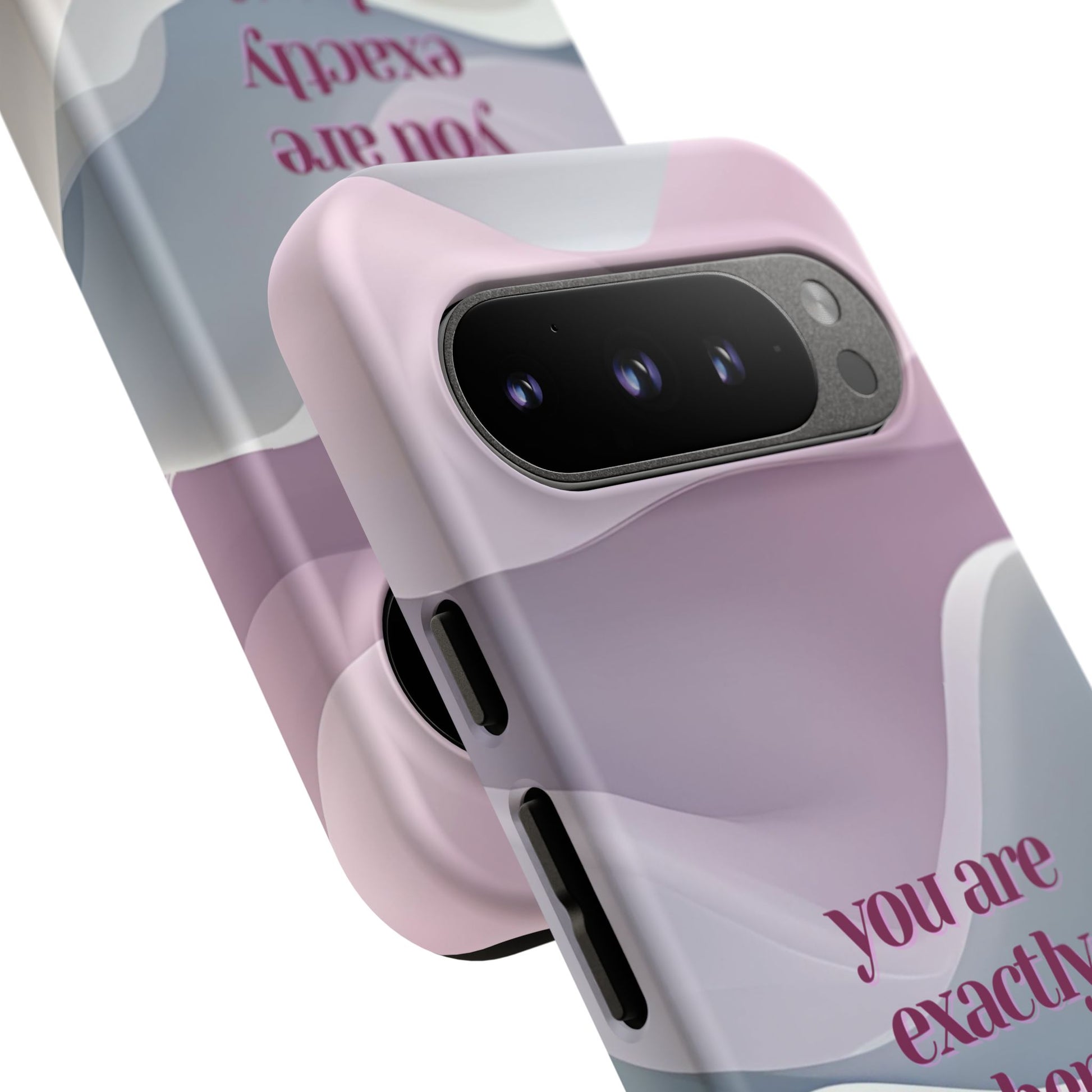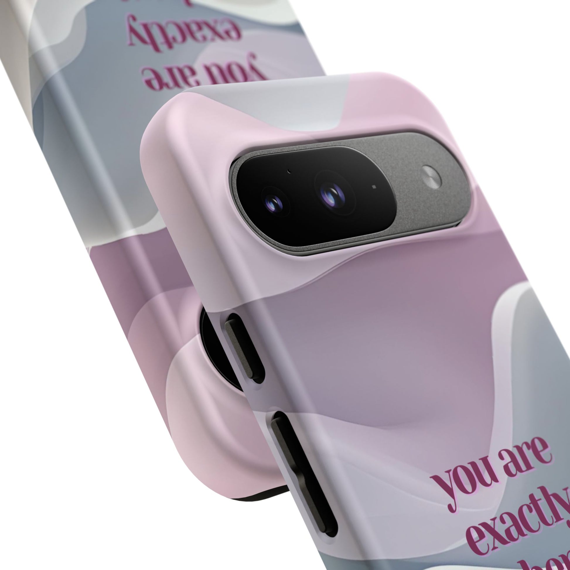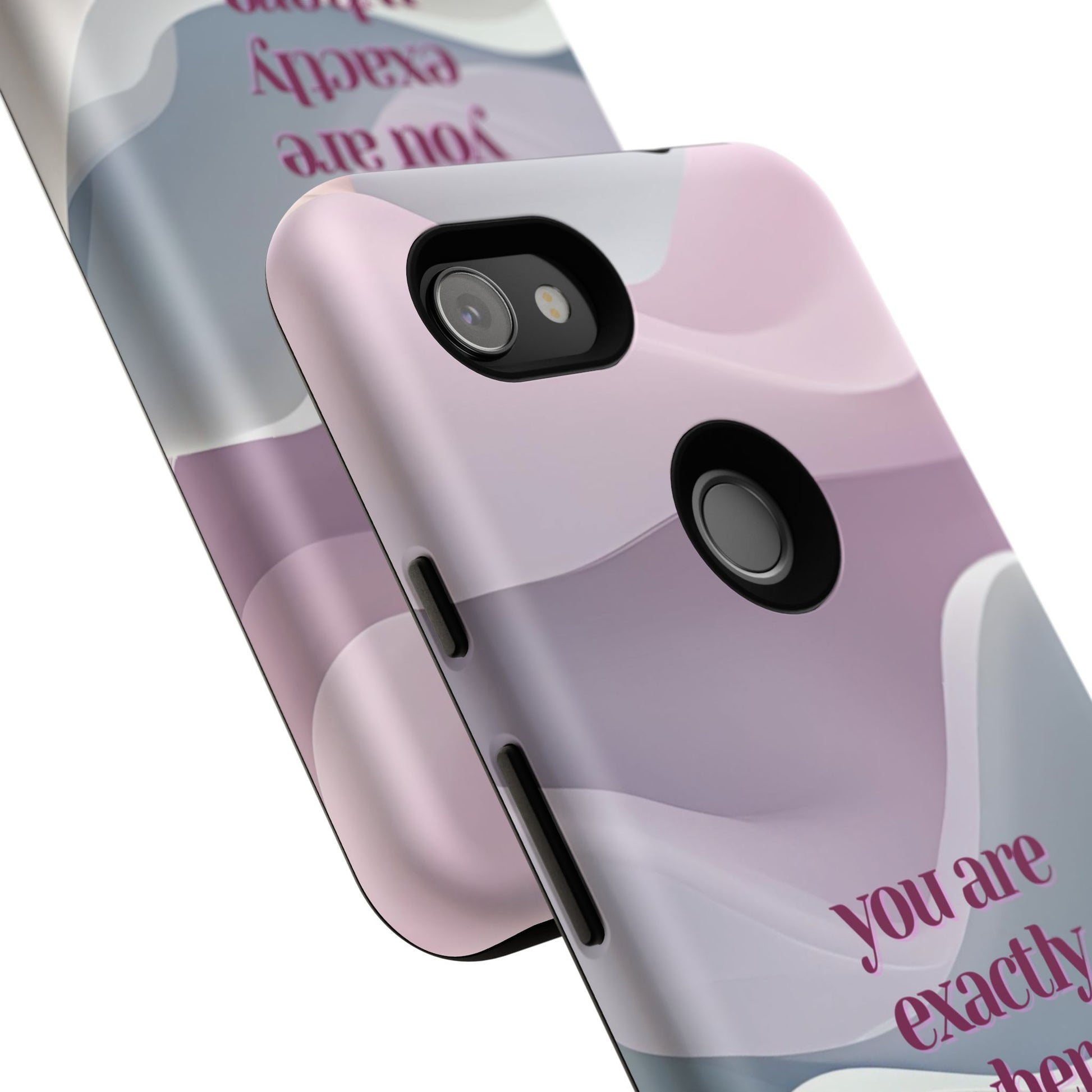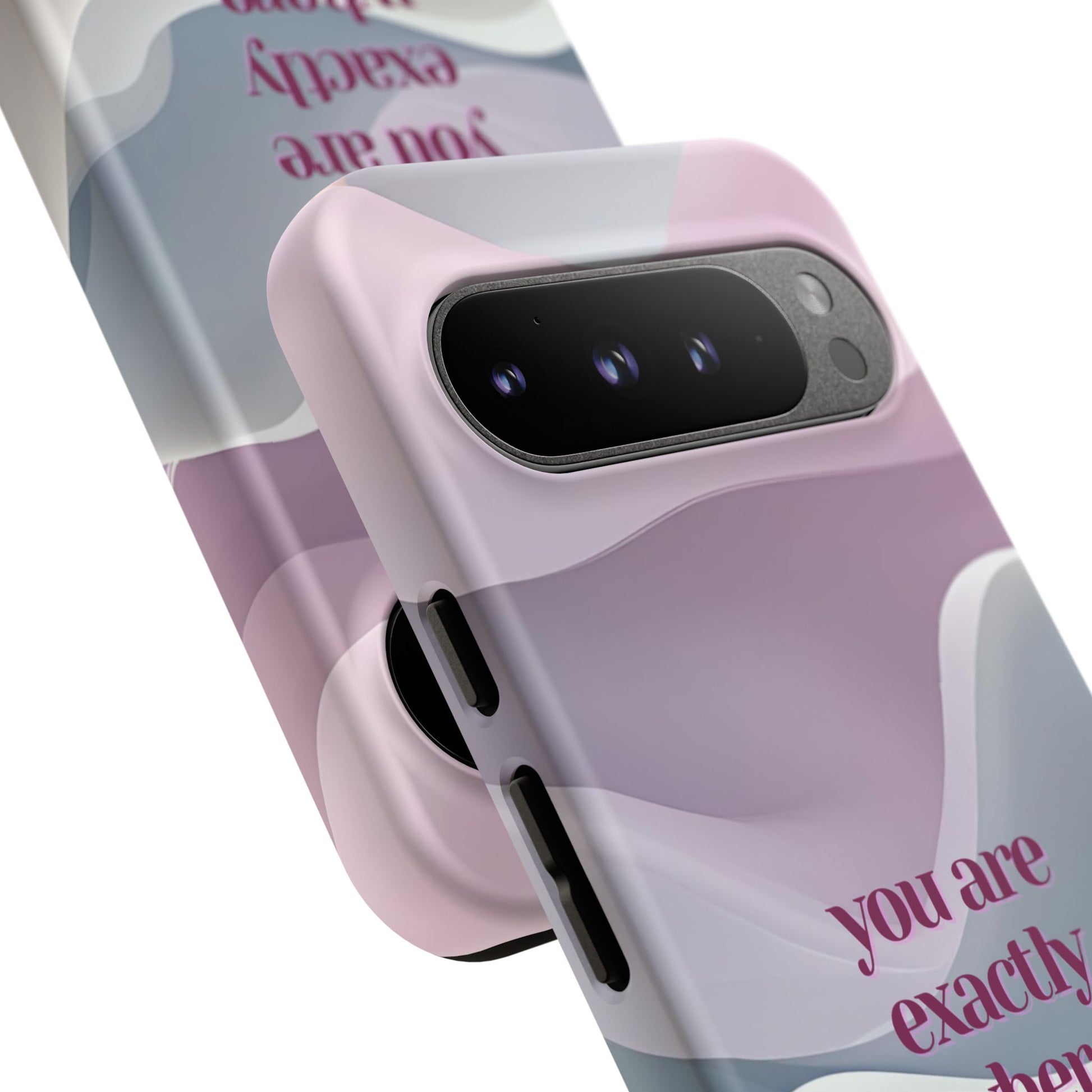 Featuring the uplifting affirmation "You are exactly where you need to be," this case serves as a daily reminder to trust your journey, embrace the present, and move forward with confidence. Whether you're conquering new challenges or simply soaking in the beauty of everyday moments, this case keeps you inspired while keeping your phone protected.