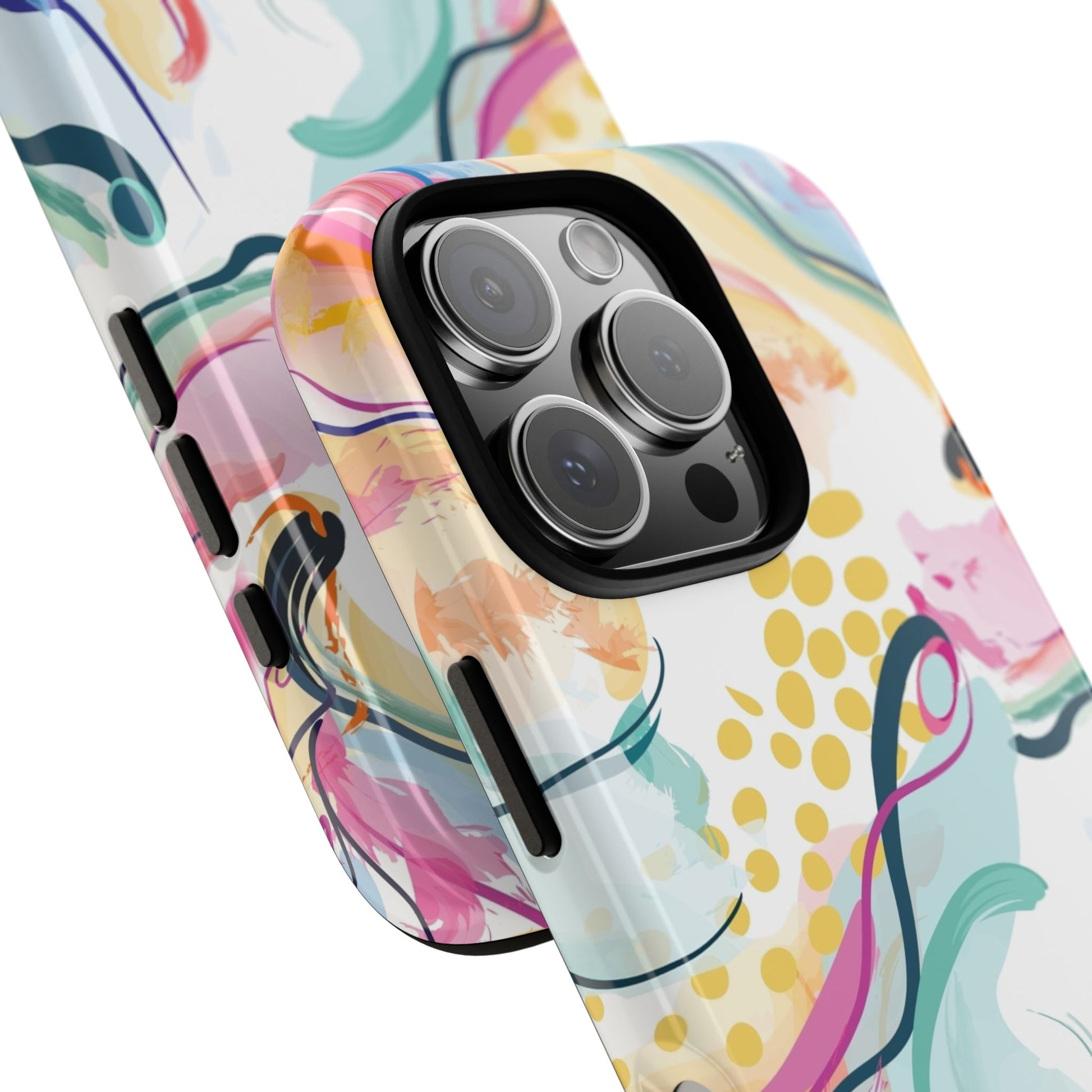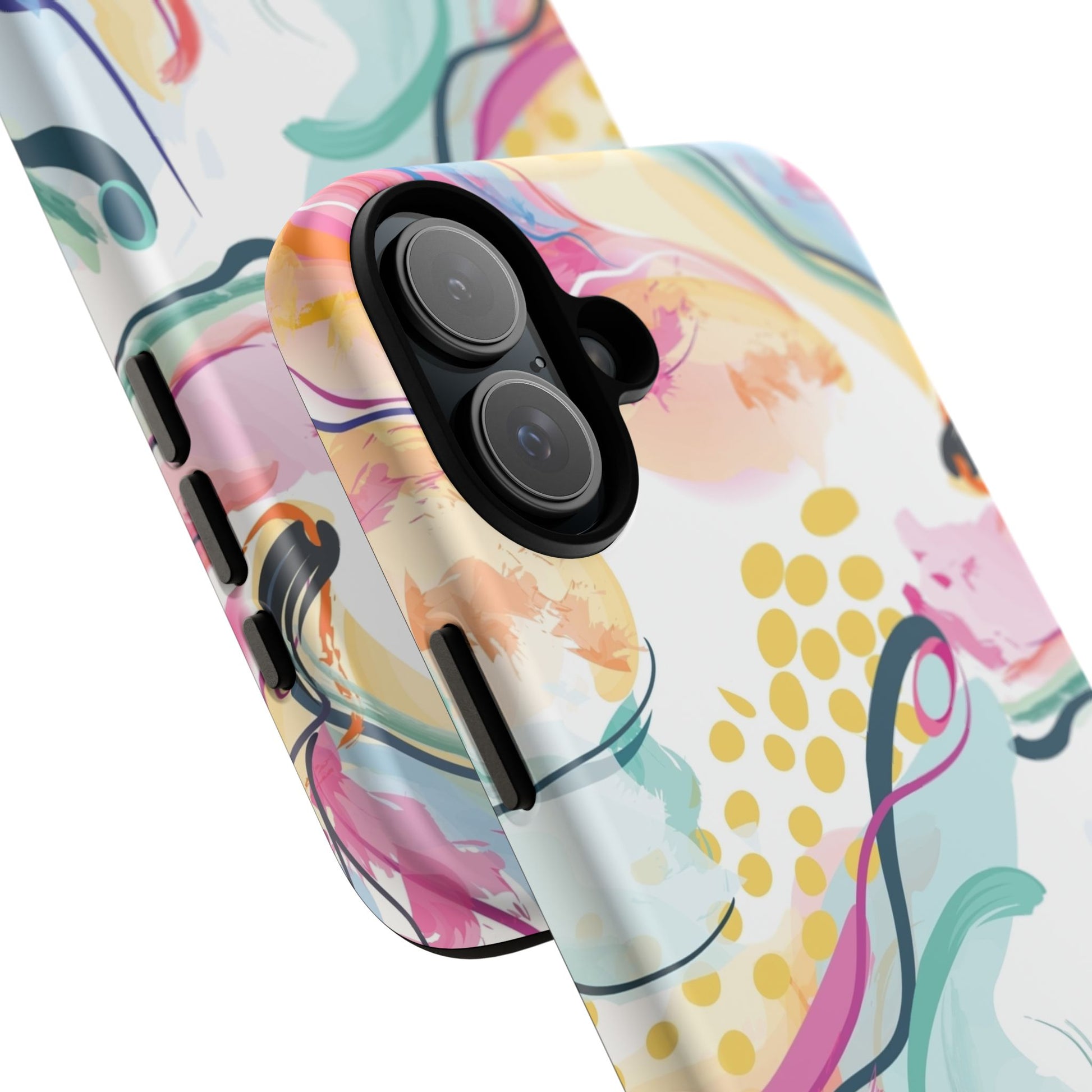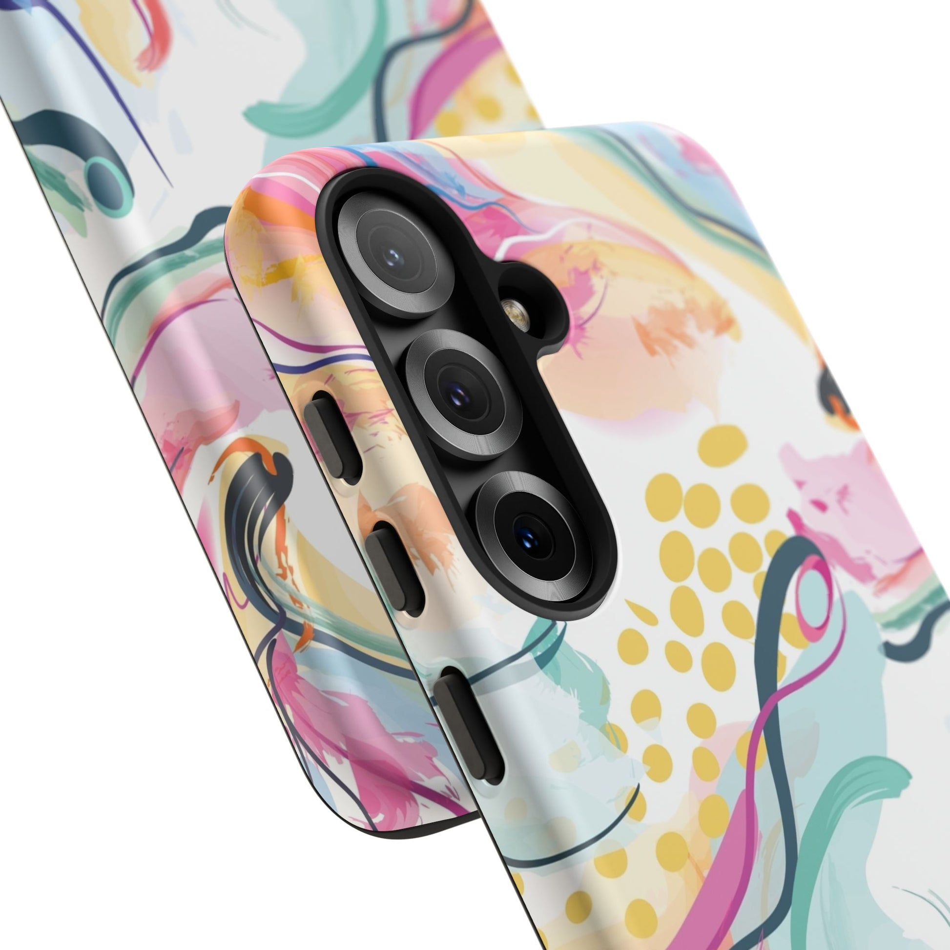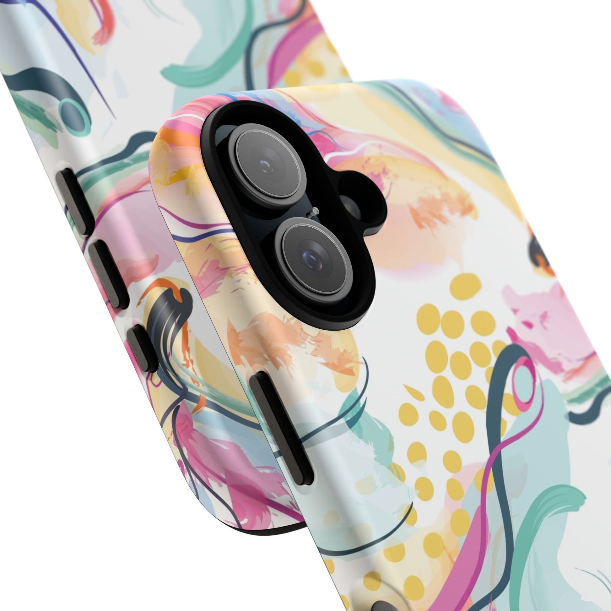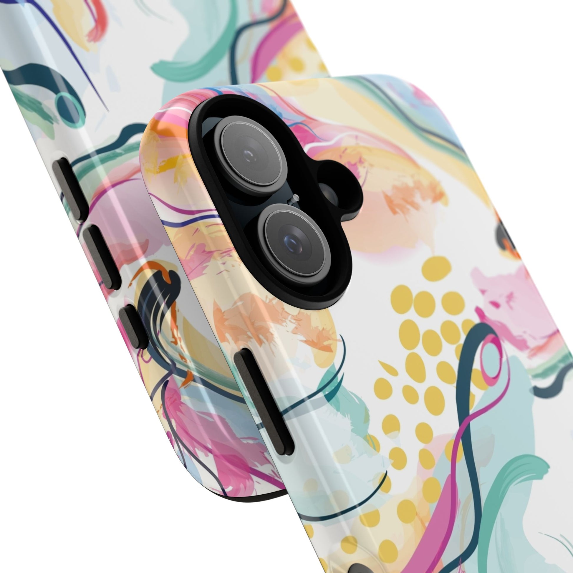 Turn your device into a canvas of inspiration with this colorful phone case, designed for iPhone, Samsung Galaxy, and Google Pixel devices. This striking accessory blends abstract art and dynamic shapes, all infused with green, blue, yellow, orange, pink, and purple hues—a vibrant fusion that feels alive with creativity and motion.