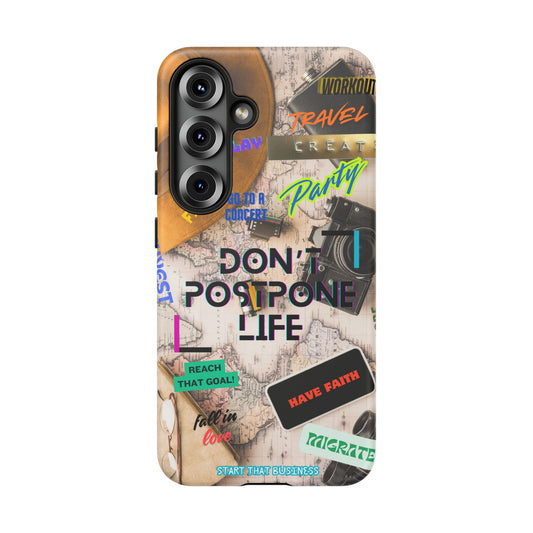 Don't Postpone Life: Motivational phone case for iPhone, Samsung Galaxy and Google Pixel devices