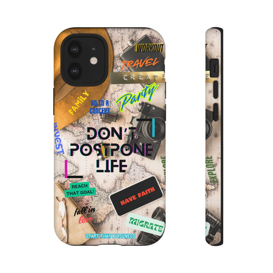 Don't Postpone Life: Motivational phone case for iPhone, Samsung Galaxy and Google Pixel devices