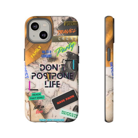 Don't Postpone Life: Motivational phone case for iPhone, Samsung Galaxy and Google Pixel devices