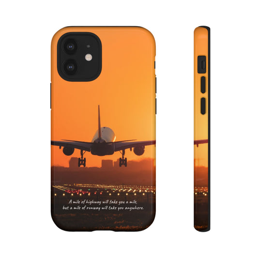 Runway Dreams Phone Case: "A mile of highway will take you a mile, but a mile of runway will take you anywhere" for iPhone, Samsung and Google Pixel