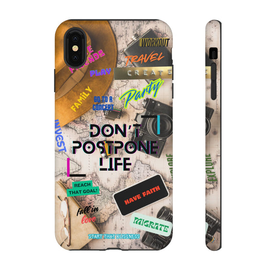 Don't Postpone Life: Motivational phone case for iPhone, Samsung Galaxy and Google Pixel devices